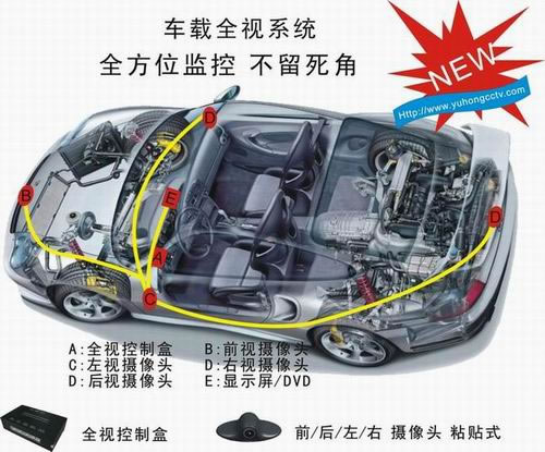 6、全视倒车系统,输出双视频信号,一路车载显示器/DVD,一路DVR或不用。